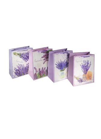 Пакет подарочный бумажный А5 23*18*10 "Лаванда", женский, с сиреневым контуром, матовый ламинат, Kairui