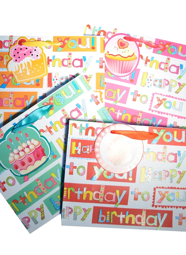 Пакет подарочный бумажный А5 23*18*10 "Нappy birthday. С тегом пирожоное", нейтр., мат. ламинат, Хансибэг