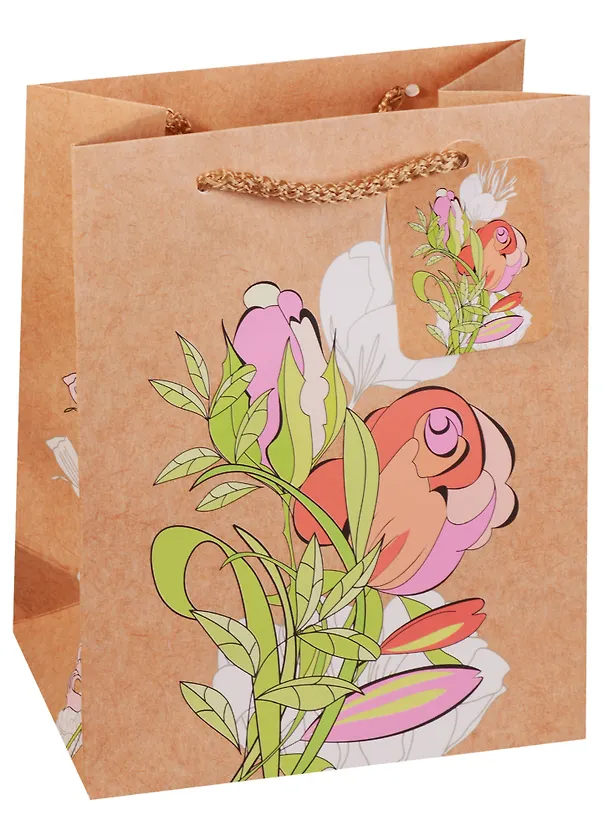Пакет подарочный бумажный А5 "Цветы на крафте"
