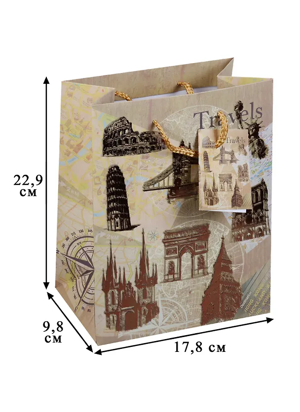 Пакет подарочный бумажный А5 "Достопримечательности"