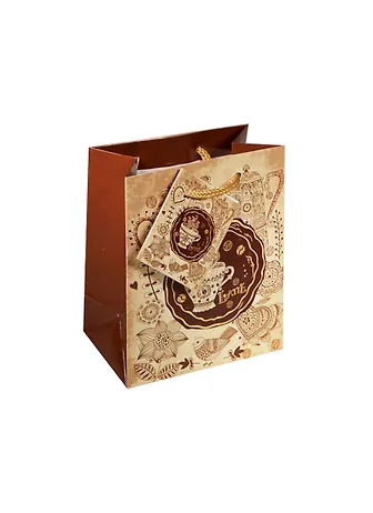 Пакет подарочный бумажный А6 "Коричневые узоры" 11*14см, ламинат, Феникс-Презент