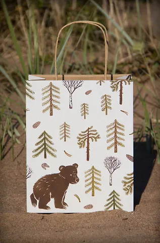 Пакет подарочный бумажный (крафт), Мишка в лесу 20*25*10см