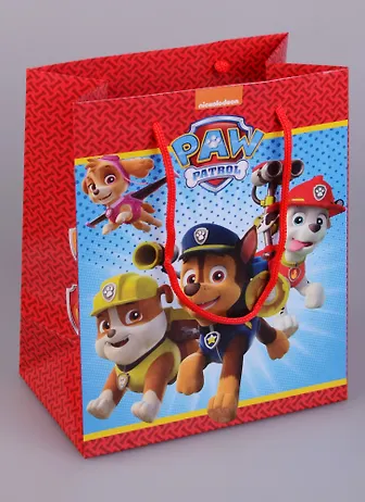 Подарочный бумажный пакет с веселыми и очаровательными героями мультфильма «Щенячий патруль» ярко украсит подарок и порадует малыша. Размер: 23х18х10 см. В ассортименте вы также сможете найти такой же пакет размером 35х25х9 см.