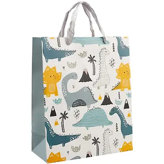Пакет был куплен для упаковки подарка мальчику. Игрушки-динозавры в подходящем пакете были оценены по достоинству. Бумага нормальная, не рвётся, выдержит небольшой подарок. Ручки удобные, не будут выскальзывать, как это бывает у обычных пакетов со шнурками. Можно носить в повседневной жизни, размер позволяет положить листы и тетрадки А4