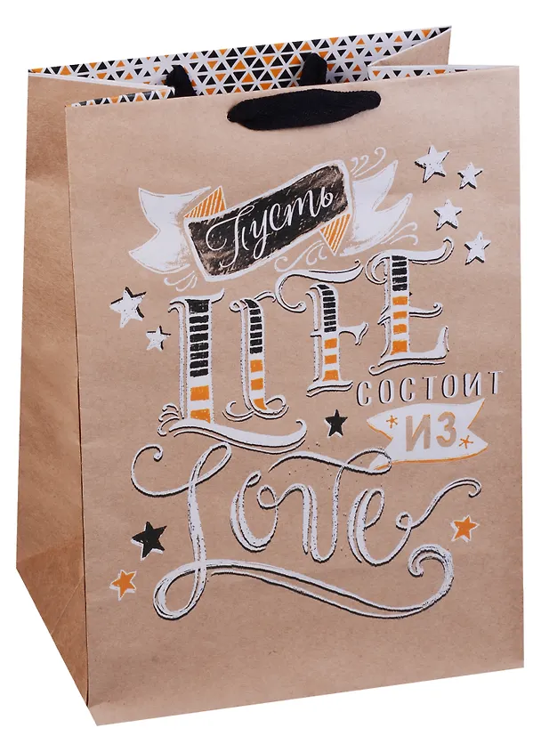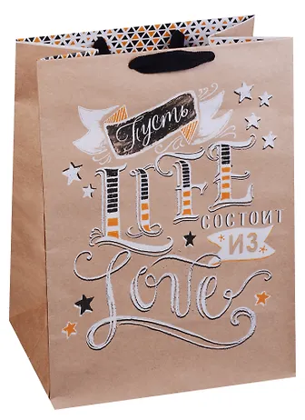 Пакет подарочный крафт А4 36*26,4*11,5 ассорти