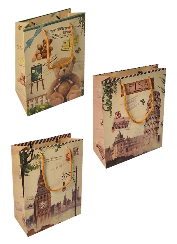 Пакет подарочный крафт 23*17,5*7,5 ассорти, Haich