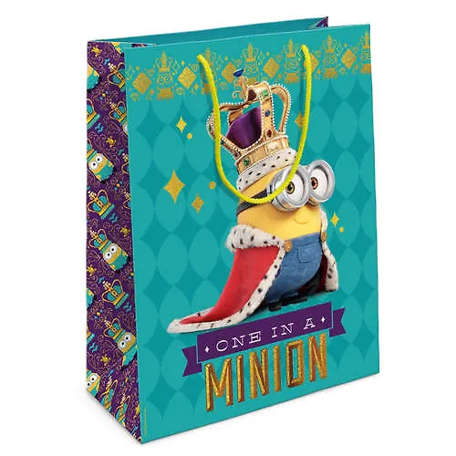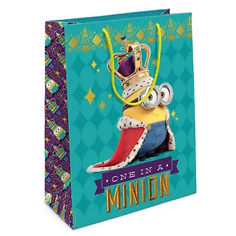 Подарочный бумажный пакет «Миньон-король» декорирован ярким привлекательным принтом. Размер: 35х25х9 см.