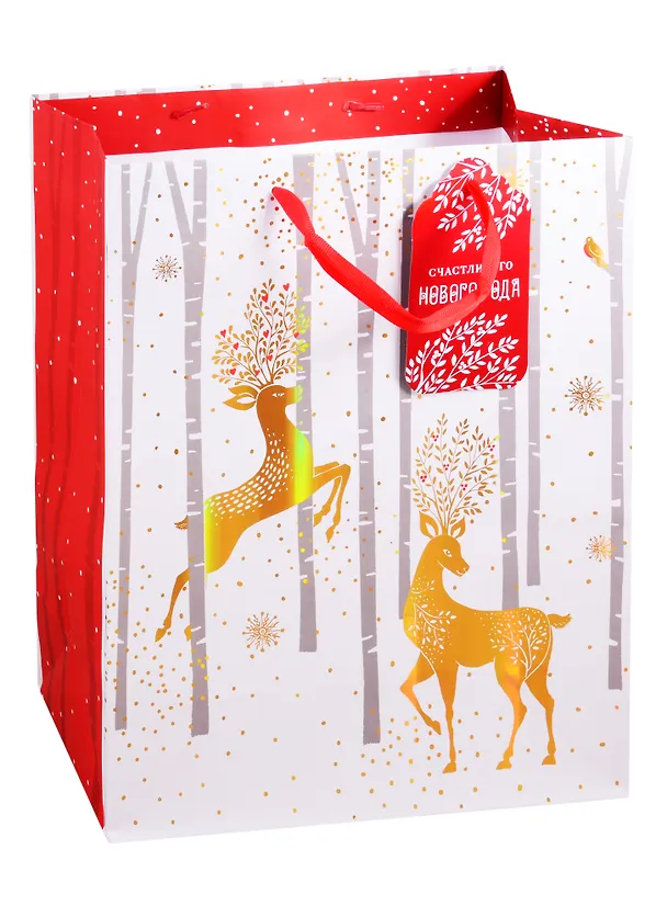 Пакет А4 32*26*12 "Зимние Олени" Новый год, бум.мат.