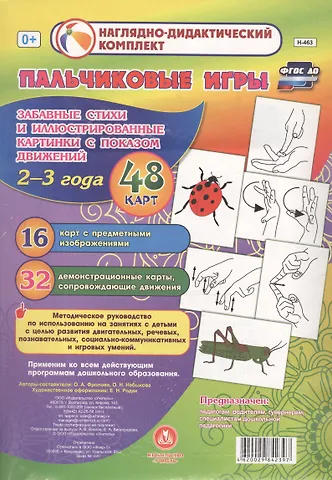 Наглядно-дидактический комплект и методическое сопровождение по его использованию предназначен для занятий с детьми старшего дошкольного возраста и включает 8 черно-белых карт с предметными контурными изображениями животных и 16 демонстрационных карт с описаниями движений в пальчиковых играх, на основе которых педагог сможет в игровой, двигательной и продуктивной деятельности организовать образовательный процесс, направленный на развитие мелкой моторики рук и ознакомление с особенностями условий обитания животных разных природных зон на занятиях познавательного цикла в соответствии с ФГОС ДО.
