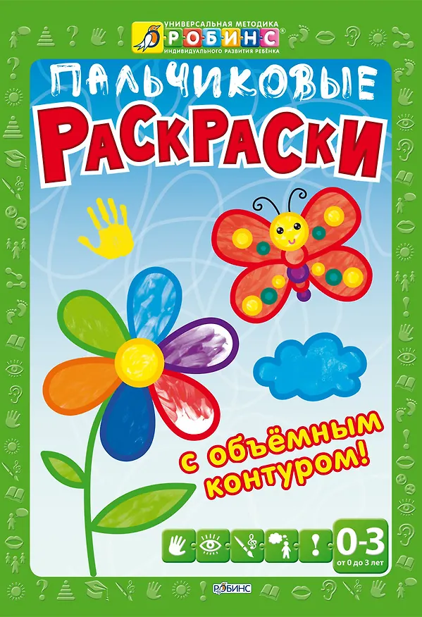 Пальчиковые раскраски «РОБИНС» познакомят вашего ребёнка с необычным рисованием научат его рисовать разными способами - пальчиками и ладошками, подготовят его руку к рисованию карандашом и кисточкой. Пособие направлено на развитие мелкой моторики ребёнка, координации его движений, мышления и внимания, восприятия цвета и формы, воображения и речи. Наш альбом сделан по специальной технологии, которая позволяет легко и просто отделять листы, которые станут первой картиной вашего ребёнка, не повреждая края бумаги. Отделив листок альбома с «первым шедевром» малыша, вставьте его в красивую рамочку или просто повесьте на стену.
