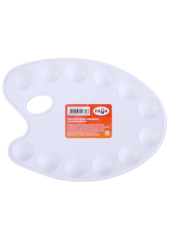 Палитра дешевая,но для детского творчества подойдет,имеет 12 окошек-ячеек для смешивания красок,понравилось,то что она легко от отмывается простой водой с мылом,но краски с густой текстурой всё-таки оставляют следы и въедаются в пластик,так как сам пластик довольно тонкий.