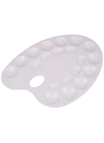 Приличная палитра, для школьника - просто шикарный вариант, подойдет на все сто. Гладкая, удобно смешивать любые краски. Имеет очень много ячеек