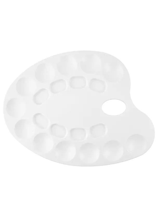 Мне понравилась палитра количеством ячеек. Я пишу акварелью, в квадратных ячейках развожу пигмент, в круглых уже из разведенного пигмента смешиваю цвета. Палитра удобна еще и тем, что можно пробовать получившиеся цвета, для этого есть место. Конечно, пластик впитывает пигмент, окрашивается. У меня палитра с первого раза стала не идеально белой.