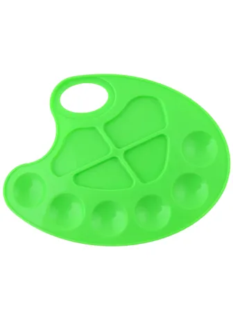 Купила дочери эту палетку для того, чтобы она могла рисовать не только цветами, которые у неё есть, но и создавать совершенно новые оттенки. Оказалось, что я промахнулась с цветом, лучше конечно же брать подобную палетку белого цвета, ведь на белом цвете все смотрится именно так, как будет выглядеть на листке бумаги, а на зелёном цвете цвет немного, но все же искажается. По размеру и количеству отсеков эта палитра то, что нужно. Поэтому если у вас есть возможность пробовать получившиеся цвета на отдельном листке, то эта палетка вам подойдёт
