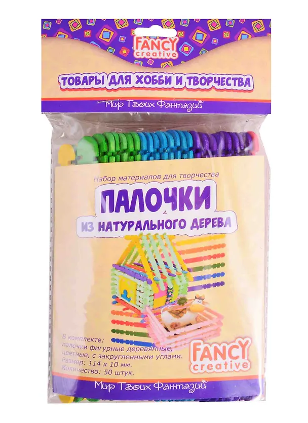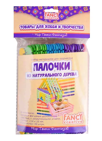 Палочки деревянные закруглённые фигурные цветные,114 x 10 мм, 50 шт., п/п с е/подвесом