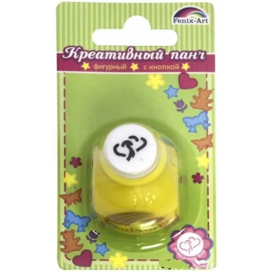 Панч-дырокол кнопочный арт.45882 СЕРДЦА /10 мм (размер рисунка 10 мм, размер панча 33х26х32 мм, желтый + белый цвет, ПВХ-блистер на картонной подложке с европодвесом)