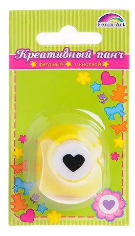 Панч-дырокол кнопочный арт.45885 СЕРДЦЕ /10 мм (размер рисунка 10 мм, размер панча 33х26х32 мм, желтый + белый цвет, ПВХ-блистер на картонной подложке с европодвесом)