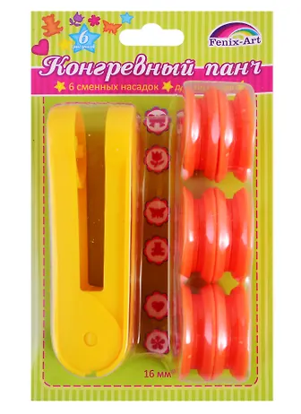 Панч-дырокол конгревный 16мм 6 смен.насадок (бант,тюльпан,бабочка,мишка,сердце,цветок) в