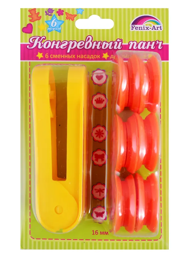 Панч-дырокол конгревный 16мм 6 смен.насадок (сердце,корона,цветок,бант,стрекоза,бабочка)