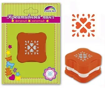 Панч-дырокол магнитный арт.45800/8 ОРНАМЕНТ/27 (размер рисунка 27х27мм, размер панча 65х65х40, оранжевый цвет, в блистере)