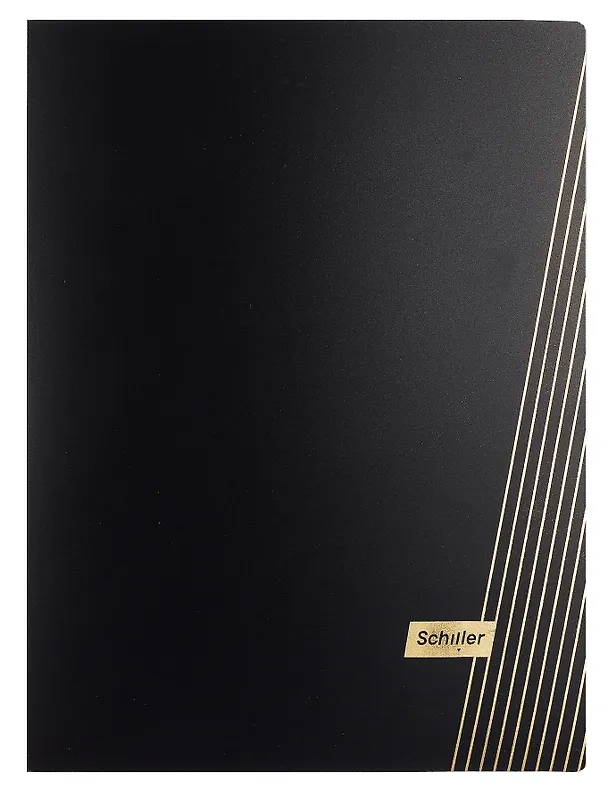 Папка выполнена в классическом чёрном цвете с некоторыми полосочками к углам. Выглядит достаточно стильно, броско и аккуратно. Края слегка скруглены, не очень колется. Материал идёт плотный, добротный. Файлики вставлены крепчайше, не выпадут никак + сами очень качественные.