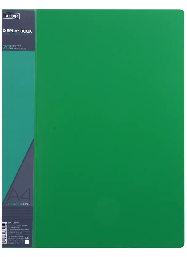 Папка 20ф А4 "STANDARD" пластик 0,6мм, зеленая