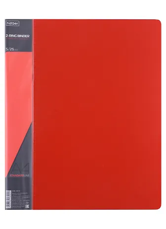 Папка 2кольца А4 25мм, пластик 0,7мм, красная