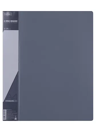 Папка 2кольца А4 25мм, пластик 0,7мм, серая