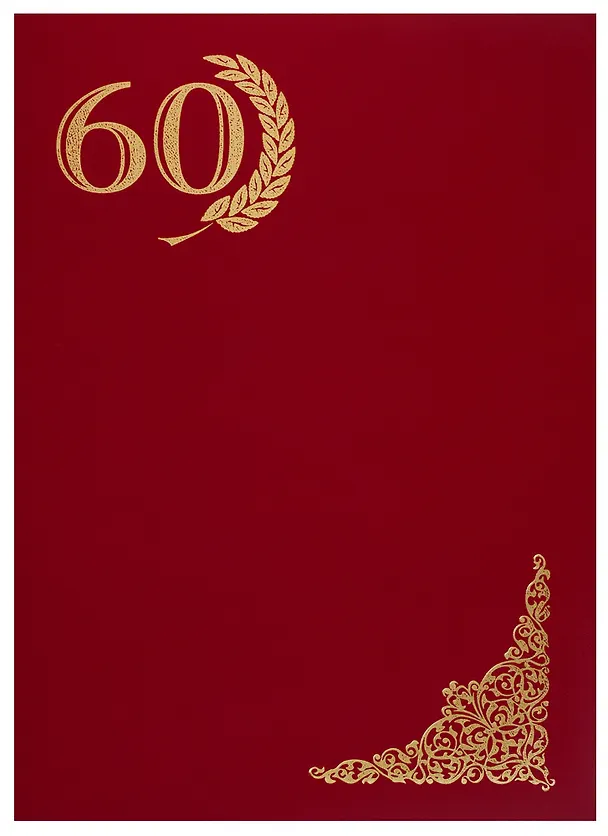 Папка адресная OfficeSpace серии «60 лет» формата А4 идеально подойдёт для поздравления с юбилеем. Изделие выполнено из прочного картона красного цвета с покрытием из бумвинила. Обложка изделия украшена тиснением из фольги. Внутренний способ крепления документов – лента-ляссе. Папка выпускается в индивидуальной упаковке. • Формат: А4; • Материал обложки: бумвинил; • Тиснение: фольгой; • Способ фиксации документов: лента-ляссе; • Цвет: красный.