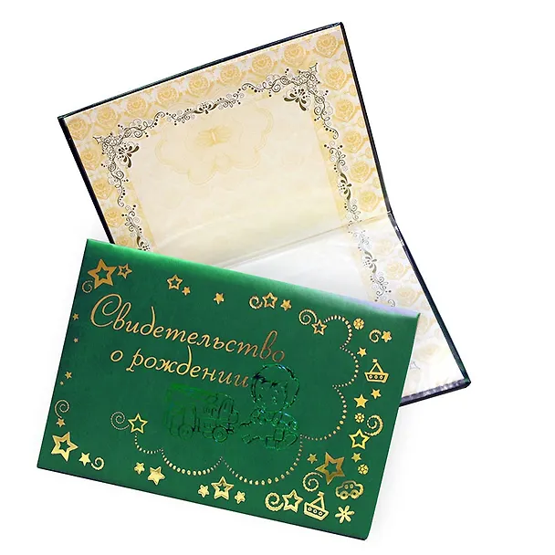 Папка адресная, А5, "Свидетельство о рождении мальчика", кожезаменитель, зеленый, КанцБург
