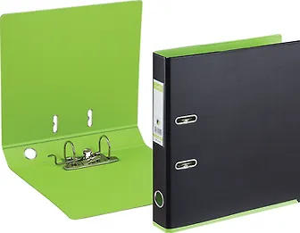 Папка архивная 50мм А4 Double Colors черная/лайм, ПВХ, прозрачный карман,пластиковые уголки, Bantex