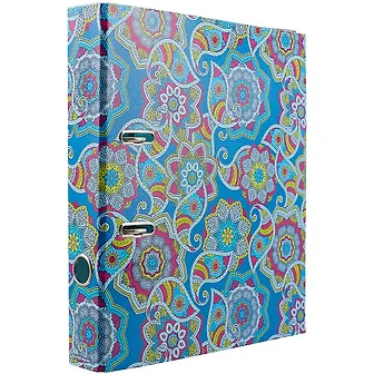 Папка - регистратор формата А4 снабжена стальным арочным механизмом с никелевым покрытием. Изготовлена из плотного картона толщиной 2 мм, покрытого матовой ламинированной бумагой с глянцевым УФ лаком. Для удобства использования на корешке шириной 50 мм имеется металлическое кольцо для захвата. Металлические фиксаторы удерживают папку в закрытом виде даже при максимальном наполнении. Вместительность 350 листов бумаги плотности 80 г/м² в зависимости от размера корешка. Завораживающий восточный орнамент.