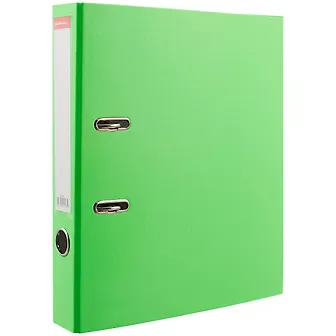 Папка - регистратор формата А4 снабжена стальным арочным механизмом с никелевым покрытием. Изготовлена из плотного картона толщиной 2 мм, покрытого бумагой со структурным тиснением и водоотталкивающей поверхностью. Корешок папки шириной 50 мм оснащен прозрачным пластиковым карманом со сменной этикеткой для маркировки. Для удобства использования на корешке имеется металлическое кольцо для захвата. Металлические фиксаторы удерживают папку в закрытом виде даже при максимальном наполнении. Вместительность до 350 листов бумаги плотности 80 г/м². На форзаце есть шаблон для оглавления. Коллекция представлена в ярких неоновых цветах.