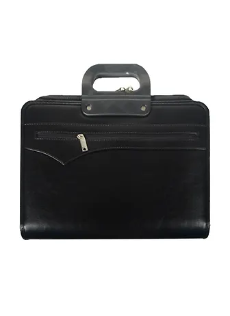 Папка деловая 270*370 кожзам, черная, 2 кармана, карман на молнии, с пласт.ручками, Канцбург