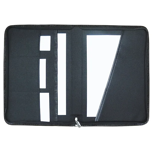 Папка деловая А4 кожзам, черная люкс, молния, карманы, Канцбург