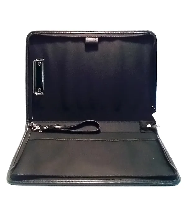 Папка деловая А4 кожзам, черная люкс, зажим для бумаг, Канцбург
