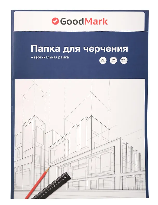 Папка для черчения А3 10л рамка вертикальная, 180г/м2, GoodMark
