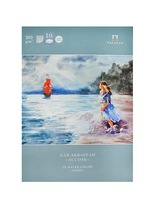 Папка для акварели А4 10л "Ассоль" тиснен."Лен" палевый, 260г/м2, Гознак