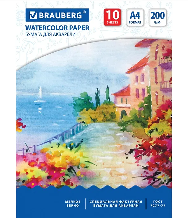 Папка для акварели А4 10л "Южное побережье" 200г/м2, BRAUBERG