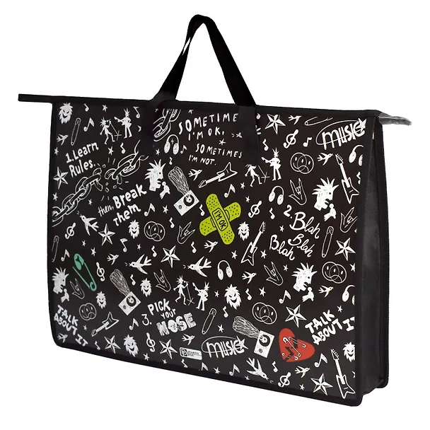 Папка для чертежей и рисунков А3 "ПАНК" 45*33*9см, внутр.ПВХ карман, дно с расширением, текст.ручки, УФ-печать