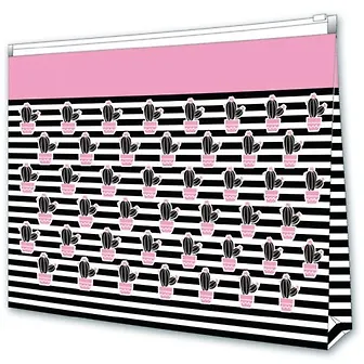 Папка для документов КАКТУСЫ (А4, 33x23.5, одно отделение, пластик, дно с расширением, гибкая молния, УФ печать, ) арт.46538