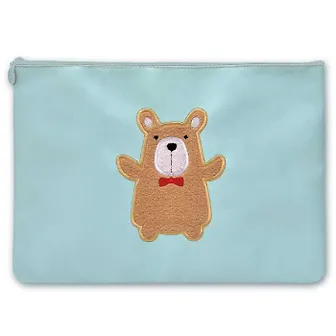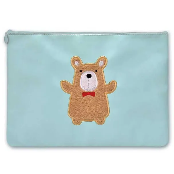 Папка д/документов арт.46494/50 МИШКА ГОЛУБОЙ (без наполнения, А4, 33х24, одно отделение, полиуретан и хлопчатобумажная ткань, формованная металлическая "собачка", молния, текстильная аппликация, вышивка, пэт-пакет)