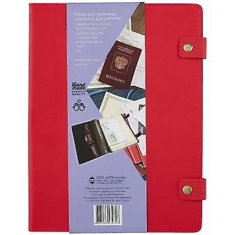 Всем советую!!! Очень удобная папка для хранения семейных документов. Экокожа приятная на ощупь. Искала именно такую папку в насыщенном красном цвете, без лишних деталей. Удобно хранить и большие документы и совсем маленькие. Намного удобнее чем папки на замках. Заклепки прослужат вам намного дольше. Цена приятно удивила, в обычных магазинах цена была в два раза больше