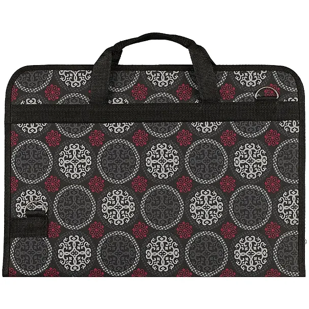 Папка имеет небольшие основы каркаса, которые не смотря на тканевый материал позволяют ей держать свою форму. Хорошо защищает находящиеся внутри рисунки от внешнего давления, если специально не пытаться их помять. Можно внутри разделить несколько работ так, что бы они не испортили друг друга.