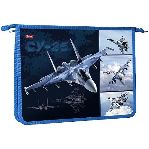 Папка для тетрадей А4 2отд. "Самолет" на молнии сверху, пластик, Hatber