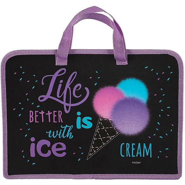 Папка для тетрадей А4 "Ice cream" 34*24,5*3,5см пластик, молния, текст.ручки