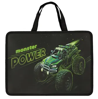 Папка для тетрадей А4 "МОНСТР-ТРАК" полипропилен, 34*25*9,5см, молния, дно с расширением, текст.ручки, УФ-печать