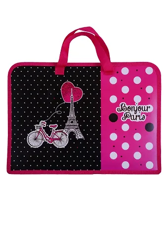 Папка для тетрадей А4 "Париж, Я люблю тебя" 1отд., молния с трех сторон, ручки, пластик, инд.уп.