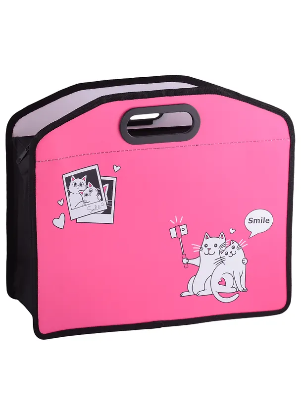Очень вместительная папка, выдерживает не только тетради, но и книги в твердых обложках. Очень удобно запихнуть в нее все свои учебные принадлежности, чтобы унести их с собой (например, в другую комнату). Замок не заедает, прошита хорошо. В начале использования сильно пахла пластиком, но после пары обработок влажными салфетками это прошло. Единственный момент - пластиковая окантовка вырубленной ручки недостаточно хорошо закреплена, периодически начинает частично отходить и нужно вставлять ее обратно.