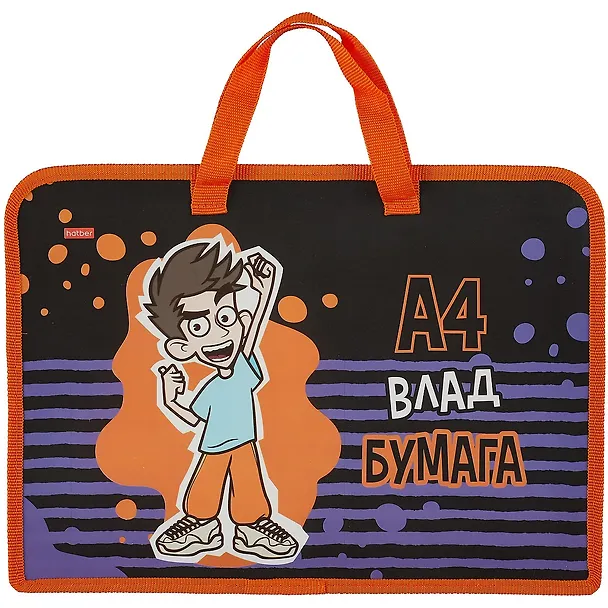 Папка для тетрадей А4 "Влад А4" 1отд., пластик, ручки, молния с трех сторон, инд.уп.